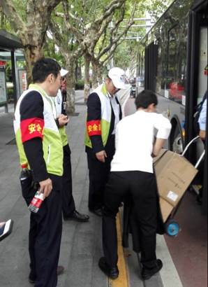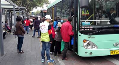 ——記82、108、128路班組活動(dòng) 10月23日上午,一分公司一車(chē)隊(duì)82路、108路、128路班組12名成員開(kāi)展了“喜迎十九大 文明我先行”志愿服務(wù)活動(dòng)。 82路班組成員黃緯、徐靜分別在震川路人民路東側(cè)站臺(tái)及路段 ;108路班組成員馬汝城、鄒金元、朱立勝、貢健良分別在震川路人民路西側(cè)站臺(tái)及路段;128路班組成員潘恒奇、季洪宇、謝華、宋穎蕾、何林弟、徐雄福震川路麗澤公園南北站臺(tái)及路段。他們不僅僅在公交站臺(tái),還在主要交通路口、人行道處引導(dǎo)乘客及行人有序上下車(chē)及通行,積極上前詢(xún)問(wèn)每一位乘客是否攜帶可疑危險(xiǎn)物品,向廣大市民和乘客進(jìn)行文明出行、禮讓斑馬線(xiàn)的宣傳,積極為社會(huì)貢獻(xiàn)自己的一份力量,得到了市民和乘客的認(rèn)可和贊許。