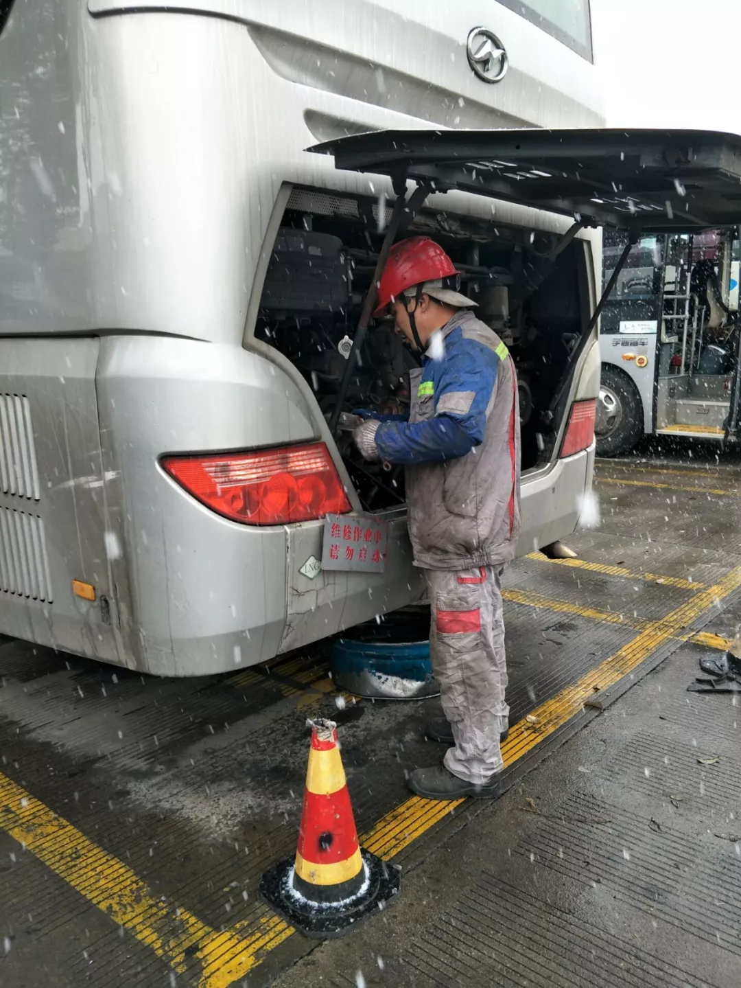 修理分公司全體維管人員積極戰(zhàn)斗在抗冰雪、保車輛的第一線,全力做好公交車輛的后勤維修保障工作,確保車輛能夠正常上線營運。